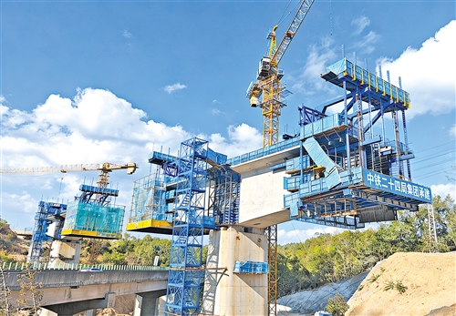 “现在我们正在进行最后一个对称节段的施工,预计5月中旬开始拆除挂篮,5月底全桥合龙。”现场技术负责人告诉记者,挂篮拆除意味着连续梁主体结构基本完成,随后将进入桥面系及附属设施施工。