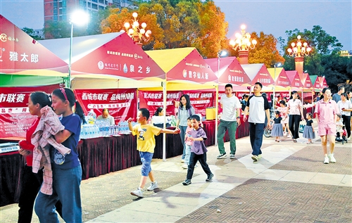 本报讯 (记者吴丽伶)4月11日晚,2026年广东省城市篮球联赛(简称“粤BA”)常规赛第三轮比赛在梅县区文体中心火热进行。借助赛事热潮,4月11日至12日,我市在梅县区人民广场举行“看城市联赛 品梅州味道”——“梅品惠”梅州优品集市系列活动,让市民游客在观赛之余一站式解锁客家风味。