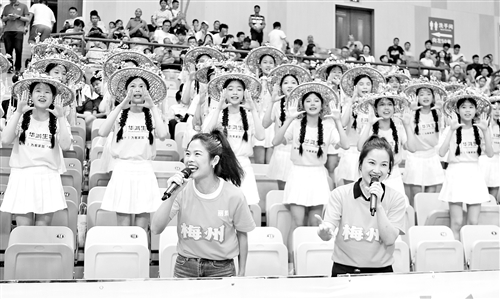 “客家同根脉相连,赛场呐喊震云天,输赢不计情谊在,兄弟相逢胜万钱。”梅州拉拉队唱的山歌,婉转又热情。