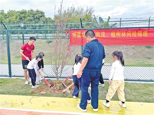 近日,在2026年西郊街道首届“睿思杯”村级足球联赛圆满收官后,一场以“党建共建林”为主题的植树活动在黄塘村文体小广场火热开展。西郊街道领导班子成员、联合中学师生代表和辖区企业家代表种下一株株树苗,让绿色生机在乡村沃土扎根生长。