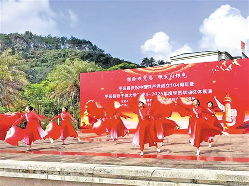 以“党建+服务”模式破解老干部急难愁盼,平远县让老同志的晚年生活更有质感。在品牌服务方面,创新打造“大讲堂+”党建服务品牌,将理论学习、健康讲座与义诊服务深度融合,实现“学有所获、惠有所依”。老干部大学优化“春秋班+大讲堂”办学模式,全年开设书法、国画、柔力球等多门类课程16个班次,年招收学员300余人次。文化活动丰富多彩,“七一”建党纪念日展演、“银龄颂党恩”主题活动等常态化开展,精美毕业纪念册定格老同志“老有所学、老有所乐”的风采。