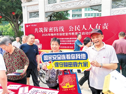 本报讯 (记者李盛华)今年4月15日是第11个全民国家安全教育日。当天,2026年梅州市保密宣传教育月启动仪式在梅州城区嘉应古城南门广场举行。