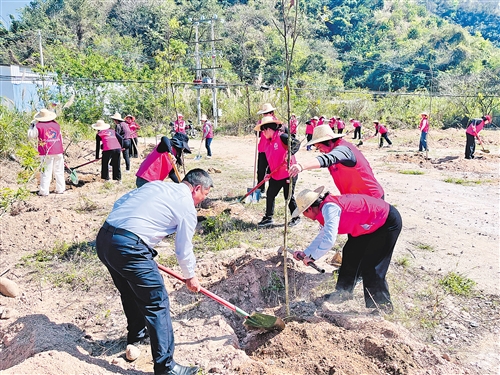 为让生态建设成果惠及更多群众,大埔县坚持“全域绿化、全域提升”思路,统筹推进城镇、乡村、河道、道路等重点区域绿化美化工作。2025年以来,大埔县林业局结合绿化专班职能,发挥林业技术优势,配合各级各部门推动乡村绿化工作落地见效。2025年,大埔县建设完成三河坝五丰郊野公园绿美点、东岭公园绿美点等多个核心绿化节点,建成森林乡村和红色绿美乡村各1个;乡村绿化计划种植苗木15.068万株,实际完成种植16.0916万株,完成率达106.79%;发动社会筹集资金1000万元,打造“人大代表林”“政协委员林”“巾帼林”“青年林”“党员先锋林”等41个“主题林”“特色林”“示范林”,并于同年7月完成抚育工作;同步建成绿美庭院212个、义务植树点152处、口袋公园42个,打造乡村绿化示范点75个、示范带19条,全域绿化格局逐步成型。同时,大埔县创新义务植树尽责形式,以“爱绿植绿护绿 共建绿美大埔”为主题,组织开展义务植树232场,吸引6422人次参与,形成“人人参与、人人尽责、人人共享”的植绿护绿良好氛围,为生态屏障建设注入源源不断的活力。